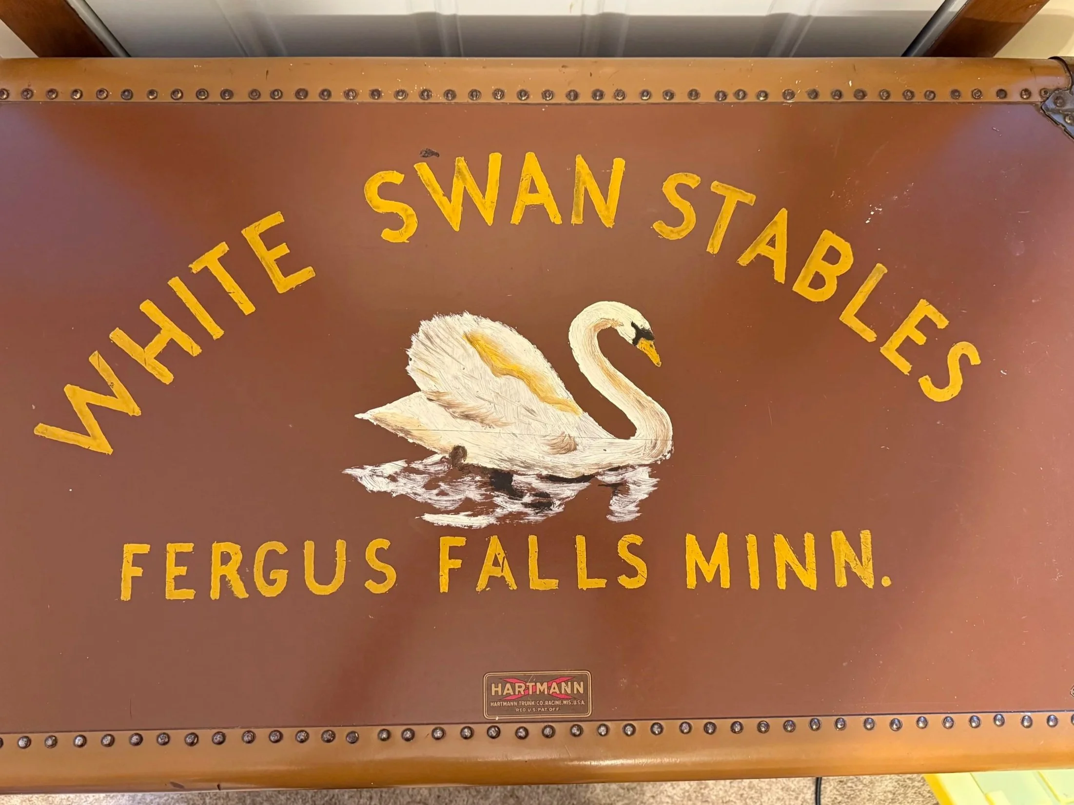 Over 80 years ago, our family had multiple business ventures in and around Fergus Falls. One thing we have in common is the name of our businesses. White Swan Stables was located on the north side of Fergus Falls and raised Saddle Bred and gaited horses for show, training, and breeding. White Swan Farms was a group of several farms in and around Fergus Falls that raised Shire horses among other things. Their main location was on the east side of Swan Lake just outside of Fergus Falls. We still have several family heirlooms from the stables at our home, including a large metal sign and several steamer trunks that were once used for transporting riding costumes and gear. These were family events, with children and spouses participating in local parades throughout Minnesota and the Dakotas.